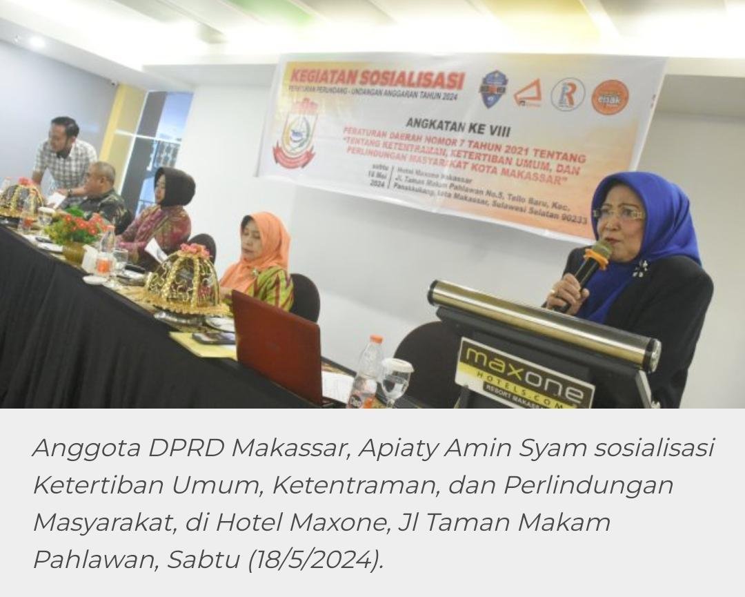 MATA JURNALIS NEWS, MAKASSAR – Anggota DPRD Kota Makassar, Apiaty K Amin Syam mengajak masyarakat dan pemerintah kota untuk saling menjaga ketertiban umum.