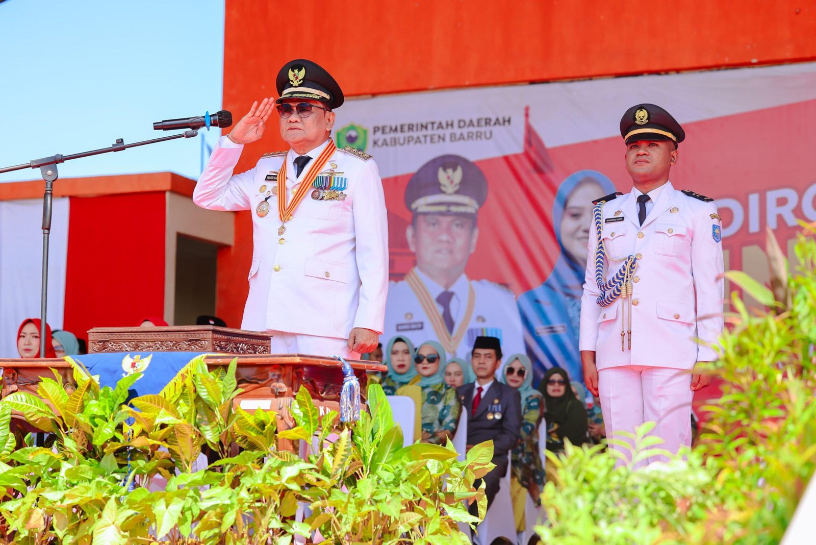 Bertindak selaku Inspektur Upacara (Irup) Bupati Barru Dr. (H.C) Ir. H. Suardi Saleh, M.Si., sementara komandan upacara Kanit Tipikor Polres Barru Ipda Muhammad Zulfikar SH, MH, pembaca Teks Proklamasi adalah Ketua DPRD Kabupaten Barru dan Pembaca Doa oleh Kepala Kementerian Agama Kab.Barru.