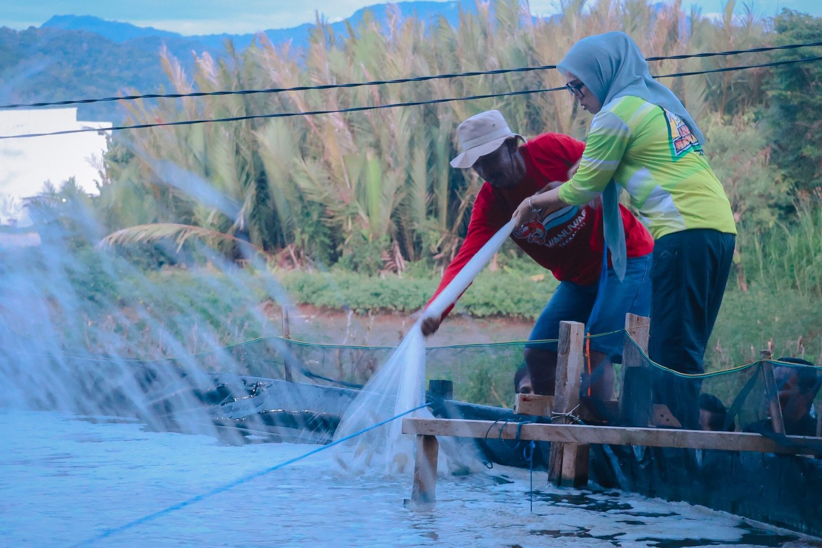 Barru, Sulsel — Bupati Barru Andi Ina Kartika Sari disela-sela kunjungannya di Kolam Pembudidayaan Udang Sistem Terpal yang dikelola Kelompok Tani Wanuae di kelurahan Takkalasi kecamatan Balusu, Selasa(27/5/2025) sempat menggunakan waktu untuk menjala udang.