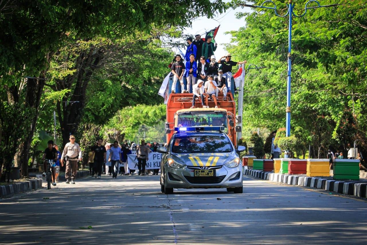 Seluruh rangkaian aksi demonstrasi berlangsung hingga sore hari dengan pengawalan ketat yang dipimpin langsung Kapolres dan Dandim. Massa aksi membubarkan diri dengan tertib sekitar pukul 15.45 WITA.