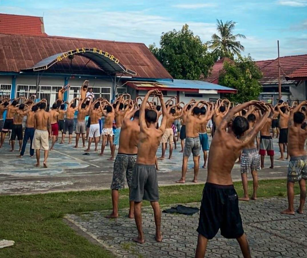 Barru – Rutan Kelas IIB Barru melaksanakan kegiatan Senam Sehat yang diikuti oleh seluruh warga binaan di lapangan rutan. Uniknya, kegiatan ini dipandu langsung oleh warga binaan yang memiliki keterampilan di bidang olahraga, sehingga suasana terasa lebih akrab dan penuh semangat. Dengan musik pengiring yang riang, para peserta senam mengikuti gerakan demi gerakan dengan penuh antusias. Sabtu (04/10)