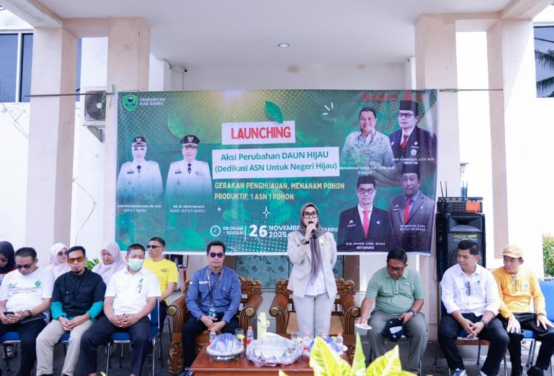 Bupati Barru, Andi Ina Kartika Sari,  secara resmi meluncurkan program DAUN HIJAU (Dedikasi ASN untuk Negeri Hijau) pada kegiatan yang digelar di Halaman Kantor Dinas Kesehatan Kabupaten Barru, Rabu pagi (26/11/2025).