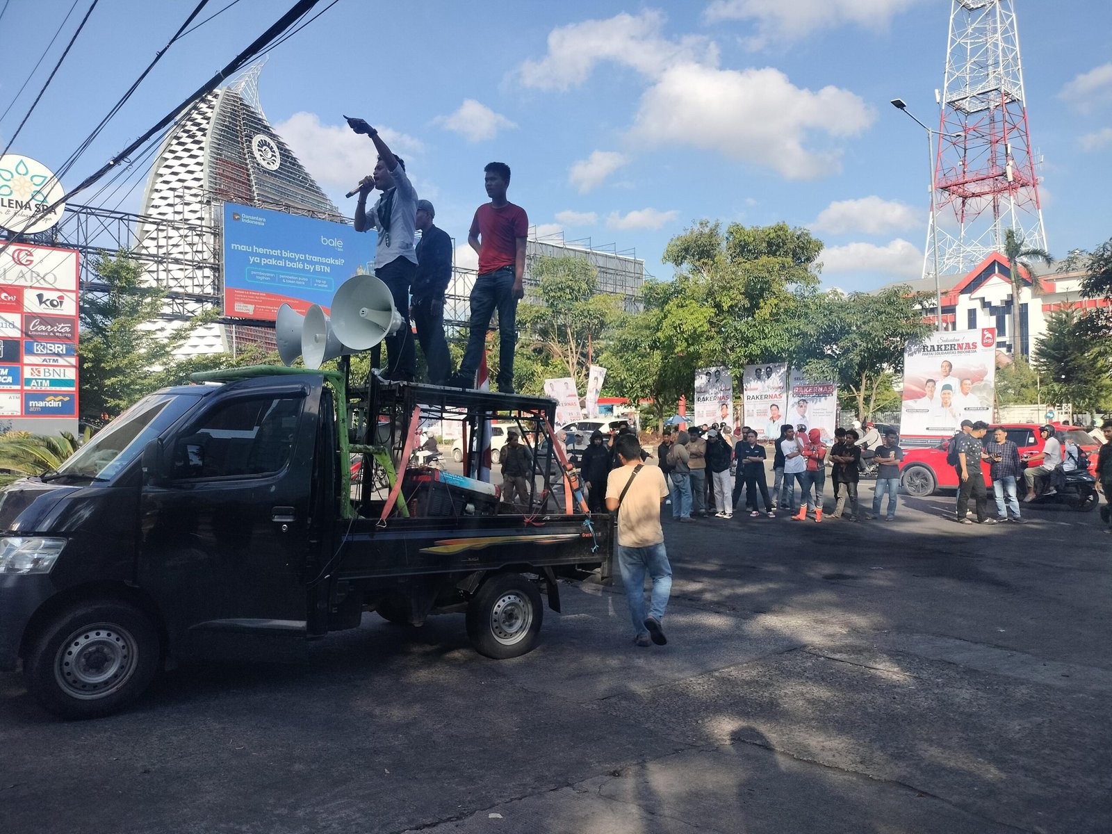 Aksi unjuk rasa tersebut berlangsung di Claro Hotel Makassar dengan pengawalan ketat dari aparat kepolisian. Massa menyampaikan aspirasi mereka melalui orasi dan bentangan spanduk.