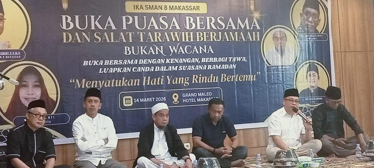MAKASSAR, Matajurnalisnews.com – Pengurus Ikatan Keluarga Alumni (IKA) SMA Negeri 8 Makassar menggelar kegiatan buka puasa bersama yang berlangsung di Hotel Maleo Makassar, Jalan Pelita Raya, Kota Makassar pada Sabtu (14/3/2026).